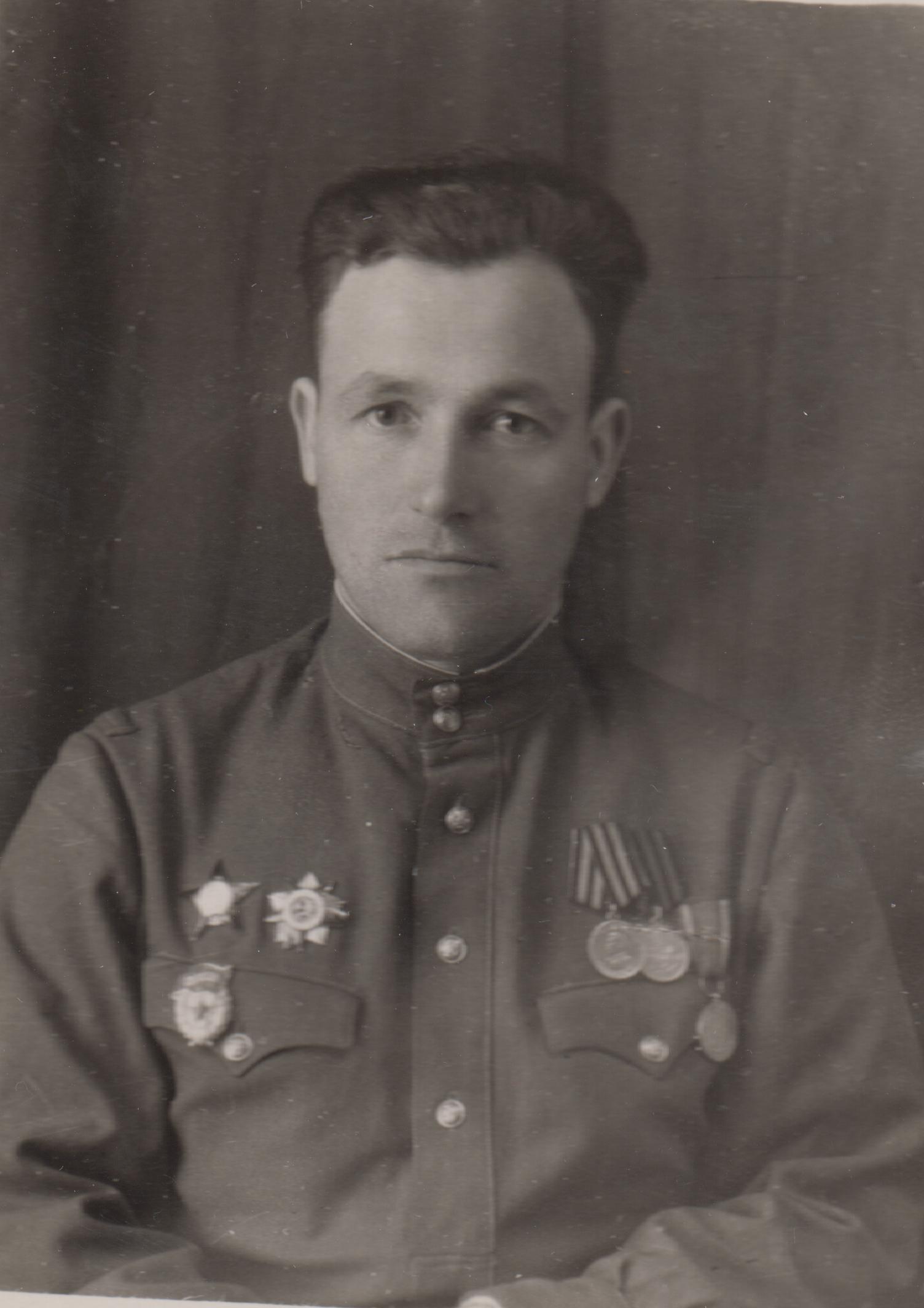 Гвардии старший лейтенант. Награжден орденами Отечественной войны 2 степени, Красной Звезды (07.1944), медалями «За взятие Кенигсберга», «За победу над Германией в Великой Отечественной войне 1941-1945 гг.», польской медалью «За Одер, Нису, Балтику».