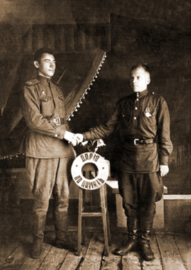В декабре Александра ,как не пригодного к строевой службе, призвали повторно в на фронт и отправили на учебу на шофера. 29.12.1943 г. он прибыл на Ташкентский ВПП в\ч п\п 57968, где был зачислен в 4 отдельный учебный автотранспортный батальон (подчиненность САВО(Среднеазиатский военный округ). По окончании был зачислен в 125 ЗП (запасной полк). С 15.01.1944 - март 1945 г.г. зачислен в 70 транспортный полк (Справка:188 ИПТАП 4 батарея(188 истребительно-противотанковый артиллерийский полк существовал с 25.3.45г. по 11.5.45г.)